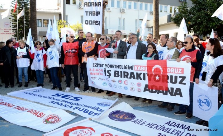 Adana Tabip Odası Genel Sekreteri Dr. Hakan Şen, Adana Sağlık Platformu adına yaptığı açıklamada “Sağlık Bakanlığı’nın yayınladığı Aile Hekimliğini hiçe sayan yönetmeliğin geri çekilmesini isteyerek, halkın sağlığı ve hekimlik mesleği onuru için beş gün iş bırakacaklarını söyledi.