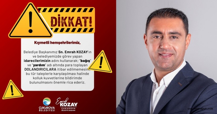 CHP'li Çukurova Belediye Başkanı Emrah Kozay, gerek kendisinin gerek belediyenin adını kullanılarak dolandırıcılık yapılmaya çalışıldığını öne sürdü.