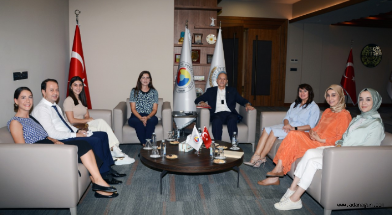 Adana Hacı Sabancı Organize Sanayi Bölgesi (AOSB) Kadın Sanayiciler Platformu Başkanı Ayça Çelik ile platform üyeleri Merve Sütcü, Merve Tezcan Bağış, Melike Tezcan Baran, Melike Ersoy Salcan ve İdil Baykam Adana Ticaret Borsası Başkanı Şahin Bilgiç’i makamında ziyaret ederek istişarede bulundu.