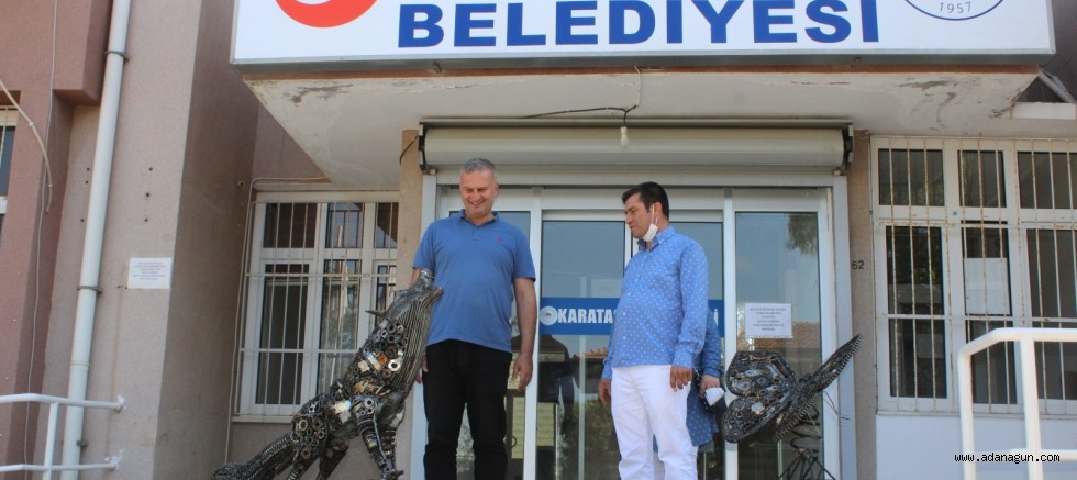 Geri dönüştürülebilir atıklardan oluşturduğu heykeller ile sanatını icra eden, halkın bilinçlendirilmesi amacı ile oluşturduğu eserleri ile bilinen Mervan Altınorak Karataş Belediye Başkanı Necip Topuz’ a Metal atıklardan oluşturduğu Bozkurt Heykelini hediye etti.