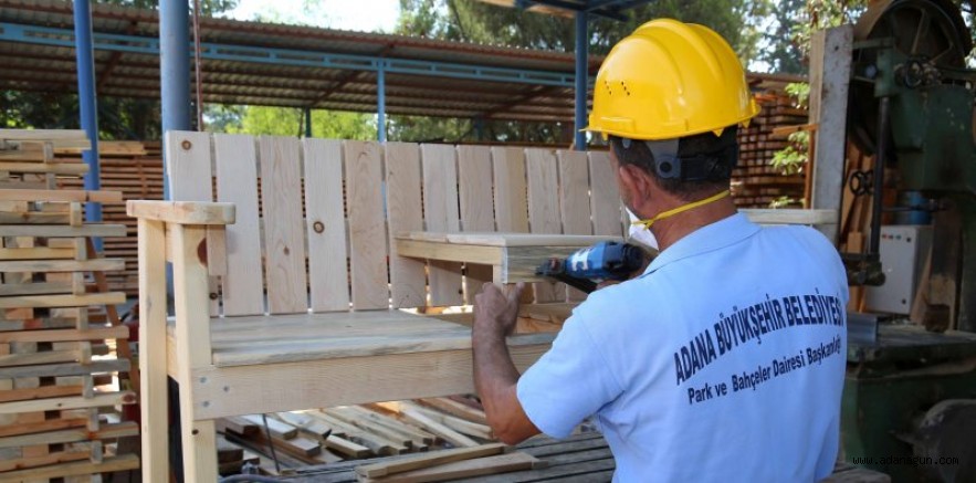 Adana Büyükşehir Belediyesi Park Bahçeler Daire Başkanlığı bünyesinde bulunan ahşap atölyesinde üretilen ürünler kent merkezi ile birlikte 15 ilçede kullanılıyor. Eski İl Özel İdare yerinde bulunan ahşap atölyesinde ayda 350 bank, 100 adet piknik masası ve 20 adet de üzeri korunaklı piknik masası üretiliyor. Nostaljik ve modern oturma gruplarının üretildiği atölyede aynı zamanda eskimiş ve kırılmış ürünlerin onarımı da gerçekleştirilerek yeniden vatandaşların hizmetine sunuluyor.