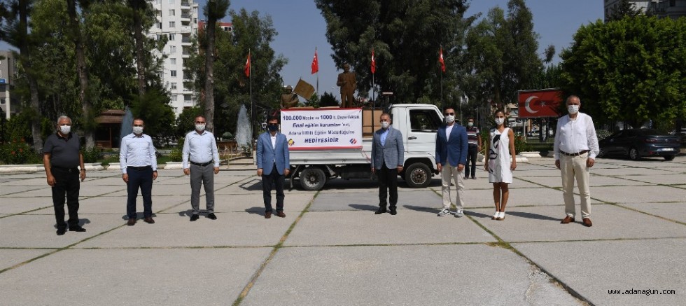 Final Eğitim Kurumları Adana İl Milli Eğitim Müdürlüğüne 100 bin maske ve bin litre dezenfektan bağışında bulundu.