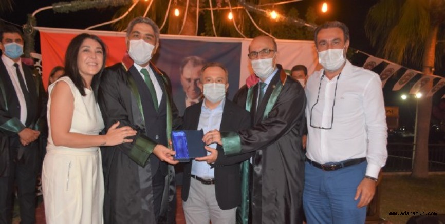 Adana Baro Başkanı Av. Veli Küçük, Başkan Yardımcısı Av. Sabahattin Gümüş, Genel Sekreter Av. Semih Gökayaz, Sayman Yönetim Kurulu Üyesi Av. İlknur Önal Tarkan, Yönetim Kurulu Üyeleri Av. Timur Ortatepe, Av. Miyesser Erselan Önenli, Av. Sinem Tanrısınatapan Keskin ve Av. Nevzat Elçi ve avukatların aileleriyle katıldığı tören pandemi nedeniyle sosyal mesafe ve izolasyon kurallarına uyularak gerçekleştirildi.
