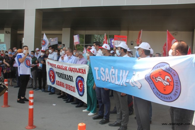 Türkiye İşçi Sendikaları Konfederasyonu'na (Türk-İş) bağlı Türkiye Sağlık İşçileri Sendikası Adana Şubesi, ek ödemelere dair Seyhan Devlet Hastanesi önünde basın açıklaması yaptı. Açıklamaya Türk-İş 4'üncü Bölge Temsilciliği yöneticileri de destek verdi. Açıklamada konuşan Türkiye Sağlık İşçileri Sendikası Adana Şubesi Başkanı Mehmet Demirci, sağlığın bir ekip işi olduğunu belirtti.