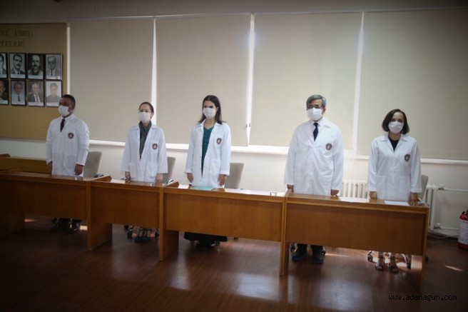Saygı duruşunda bulunulması ve İstiklal Marşı’nın okunmasıyla başlayan törene, Rektör Prof. Dr. Meryem Tuncel, Rektör Yardımcısı Prof. Dr. Hayri Levent Yılmaz, Tıp Fakültesi Dekan V. Prof. Dr. Tunay Sarper, Dekan Yardımcısı Prof. Dr. Ufuk Özgü Mete, Balcalı Hastanesi Başhekimi Prof. Dr. Hasan Murat Gündüz ile akademisyenler katıldı. 2020-2021 Eğitim Öğretim Yılı başarı sıralamasında Çukurova Üniversitesi Tıp Fakültesine birincilik derecesi ile giren Merve Hayva ve dereceye giren diğer öğrenciler temsili olarak önlük giydi.
