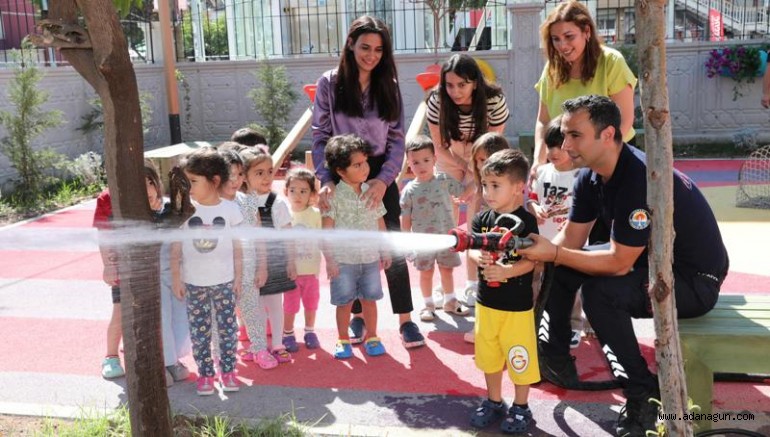 Yüreğir Belediyesi’ne bağlı Minik Yürekler Kreşi’nde çocuklara yangın tehlikelerine karşı bilinç oluşturmak amacıyla itfaiye eğitimi verildi.